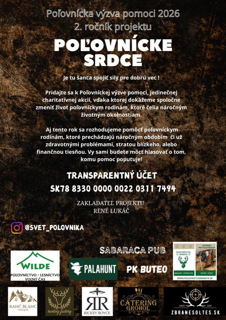 Projekt Poľovnícke srdce vznikol s jediným cieľom – pomáhať tým, ktorí sú súčasťou poľovníckej rodiny a ocitli sa v ťažkej životnej situácii.