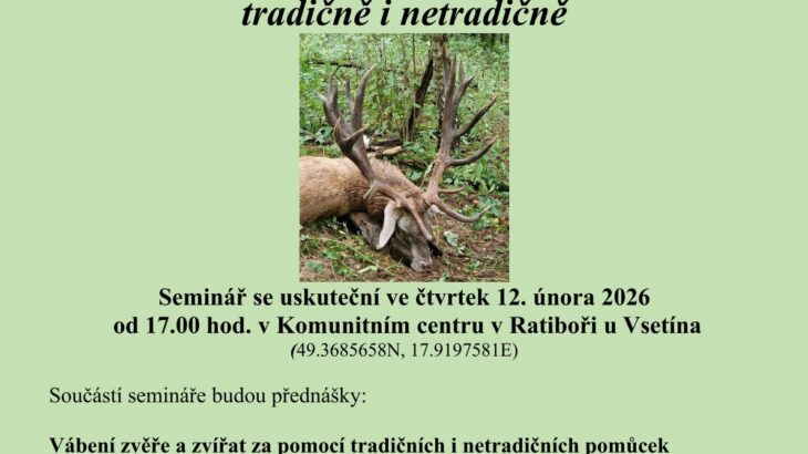 Kolegovia z Českej republiky pozývajú na odborný seminár s názvom „Vábničky a vábení, tradičně i netradičně“, ktorý sa uskutoční dňa 12. februára 2026 od 17:00 hod. v Komunitnom centre v Ratiboři u Vsetína. Program, bližšie informácie a podmienky registrácie viď. priložená pozvánka.